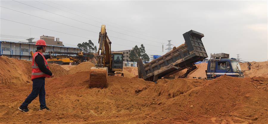 項(xiàng)目部現(xiàn)在已吹響“決戰(zhàn)三十天,沖刺總目標(biāo)”的號(hào)角,各項(xiàng)搶工工作正全面鋪開(kāi)。目前,安全文明臨時(shí)設(shè)施已基本施工完畢,現(xiàn)場(chǎng)正緊鑼密鼓地進(jìn)行主體處障礙山體移除及基坑開(kāi)挖等工作。