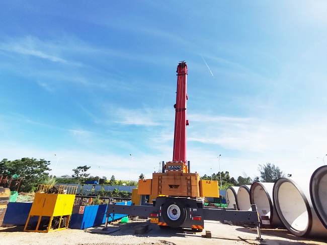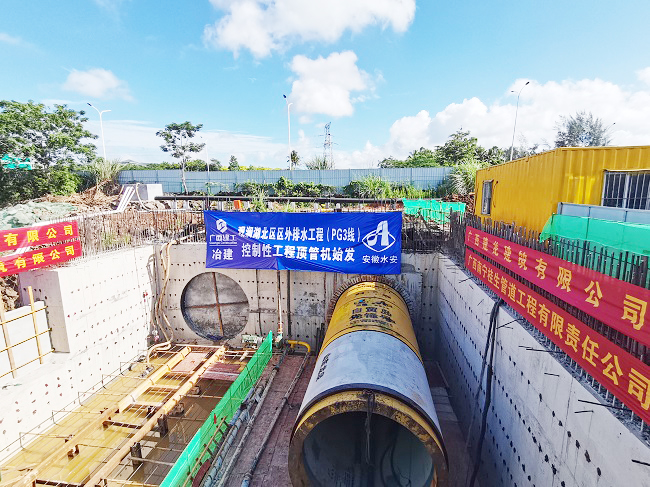 觀瀾湖北區(qū)區(qū)外排水工程(PG3 線)項目位于海南省??谑杏^瀾湖北區(qū),主要建設(shè)內(nèi)容為布置4.79km長的排水箱涵。項目所處位置的地質(zhì)環(huán)境復(fù)雜,還緊鄰高速公路,工作井靠近魚塘和高壓電塔,地上管線多,給施工作業(yè)帶來重重困難和挑戰(zhàn)。為了保證施工質(zhì)量和建設(shè)效率,第三分公司邀請專家精心策劃施工方案、組建精英團隊施工,項目團隊提前規(guī)劃好了運輸路線,并與交通部門緊密協(xié)調(diào),確保了各項準備工作的周全,為項目建設(shè)順利進行奠定了堅實的基礎(chǔ)。