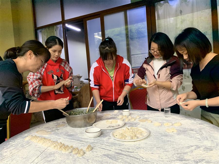 職工在包餃子