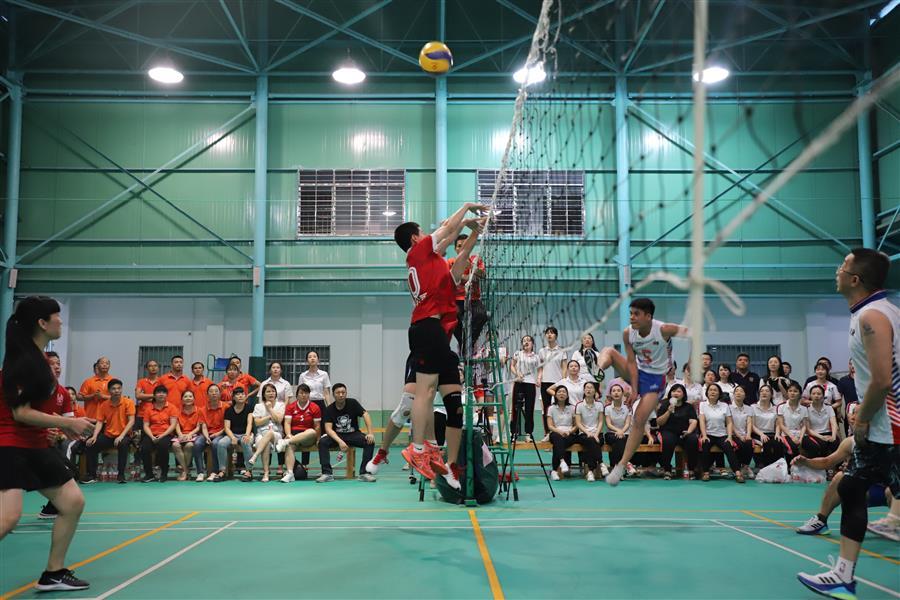 當天下午3點30分,隨著裁判員清脆的第一聲哨響,氣排球決賽正式拉開帷幕。各組參賽隊員,身著各組統(tǒng)一的比賽服,抖擻精神,拉滿戰(zhàn)斗值,在球場上激烈角逐。傳球、吊球、扣殺,參賽人員用自己精湛的技術和熟練的戰(zhàn)術配合,相互較量著實力,展示著氣排球運動的精彩魅力,現(xiàn)場加油聲、喝彩聲經(jīng)久不停,比賽現(xiàn)場十分激烈精彩。